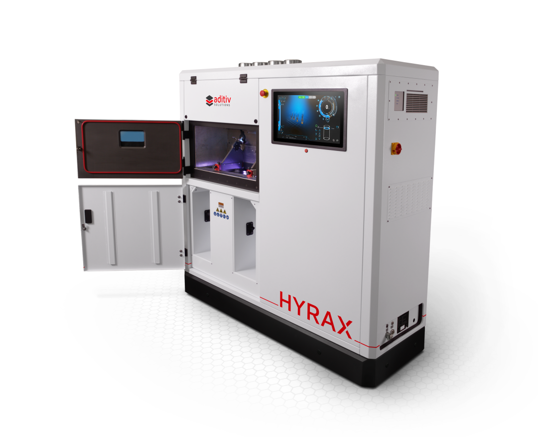 The HYRAX metal 3D printer makes extensive use of 3D printing. More than 150 parts (80 unique part numbers) on the HYRAX are 3D printed in engineering materials and installed on every machine. 3D parts include funnels, housings, nozzles, knobs, brackets, covers, handles, cams and an array of other components.